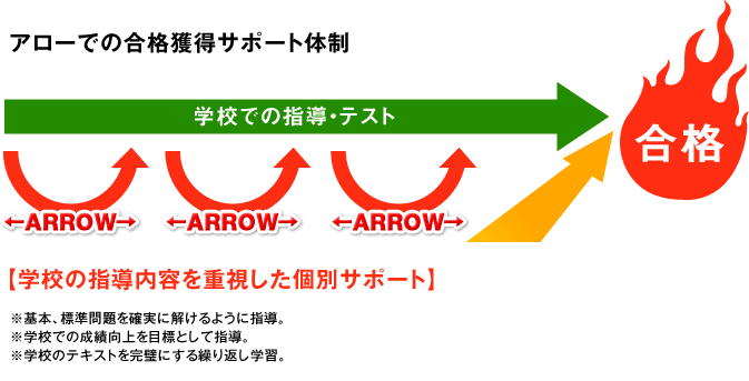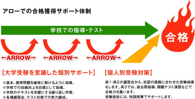 こうした推薦入試での大学受験を考えている高校生のために、学校の進度、テストに合せた学習を行います。